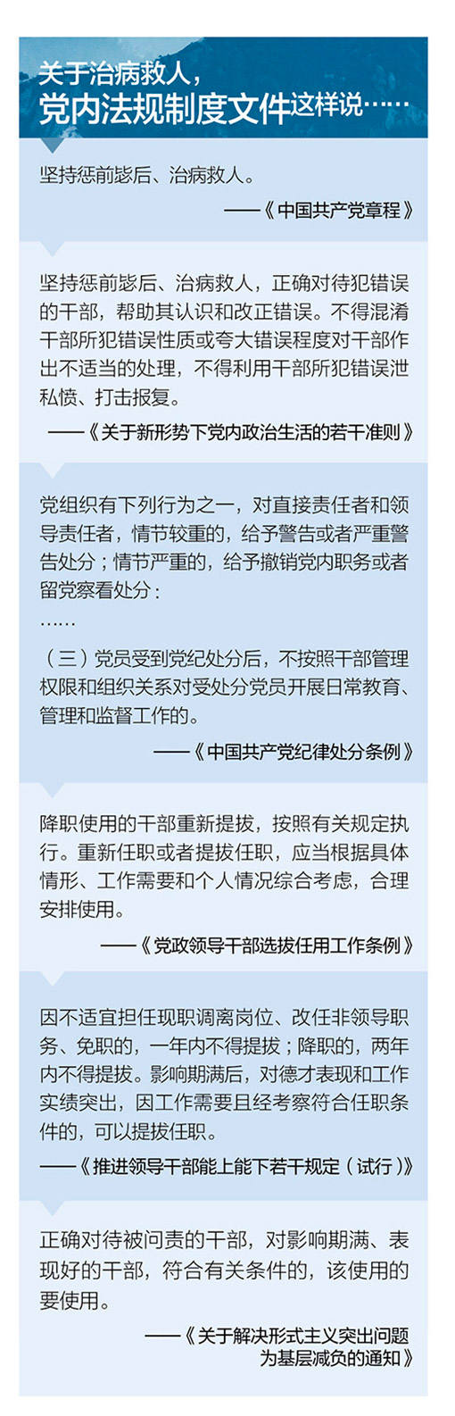 三怕违反规定。不少负责人告诉记者,目前针对受处分处理干部的使用,大多只是原则性、倡导性要求,并没有明确、具体的制度规定。本着多一事不如少一事的原则,一些地方在涉及受处分处理干部的使用问题上,尽量采取回避态度。