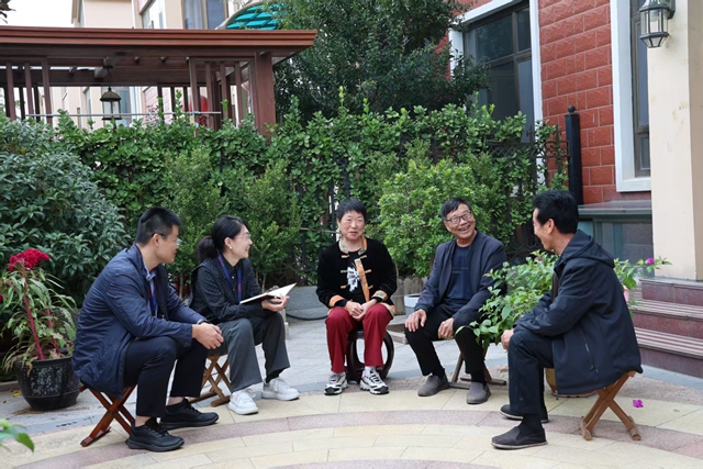 图为寿光市纪委监委干部正在与村民围坐交谈,倾听群众诉求、收集意见建议。 李红 摄